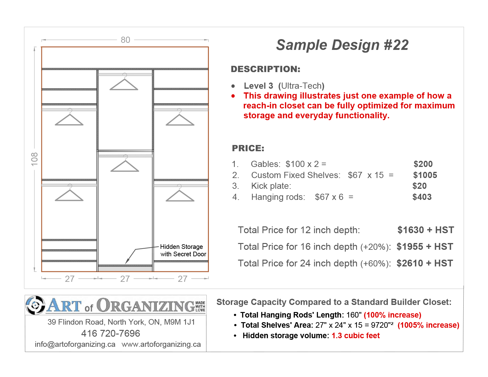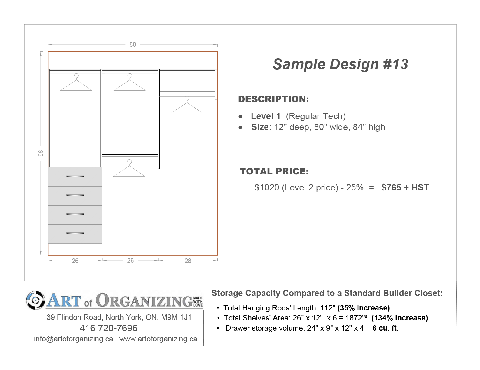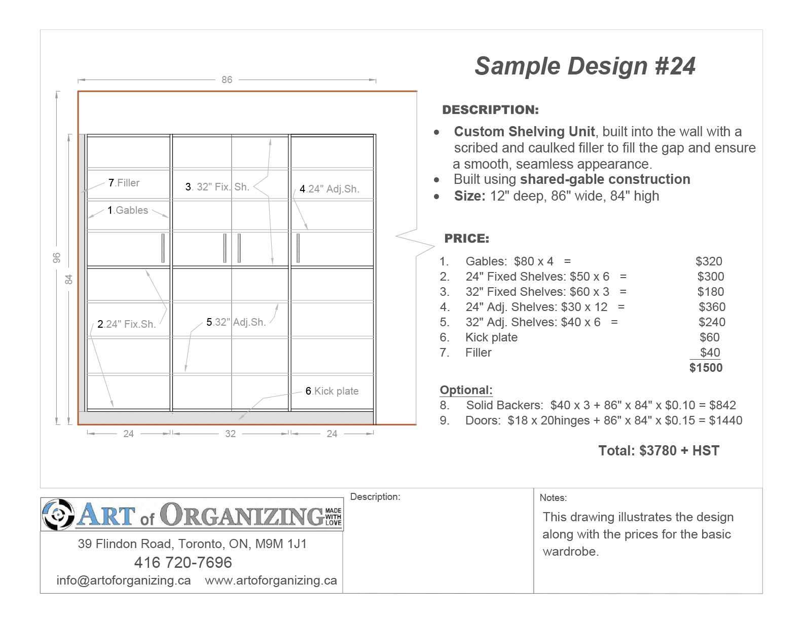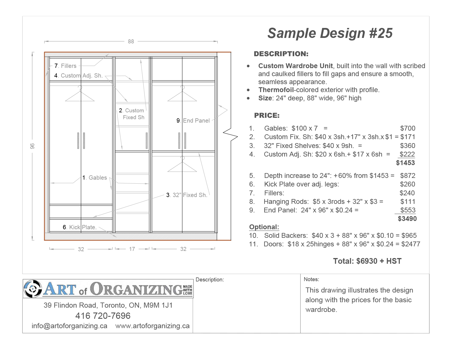 Please note: All of our work is 100% custom and tailored to your unique space and needs. The options shown below are simply some of the most common and frequently requested layouts.