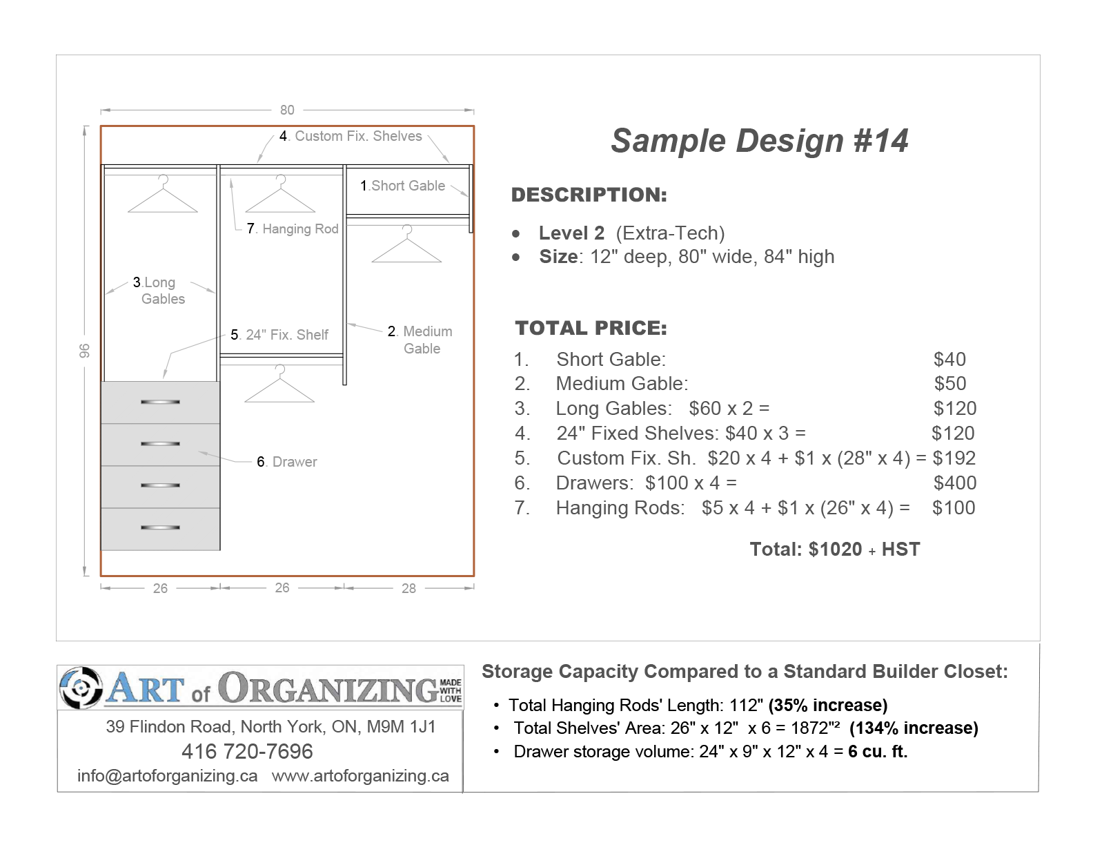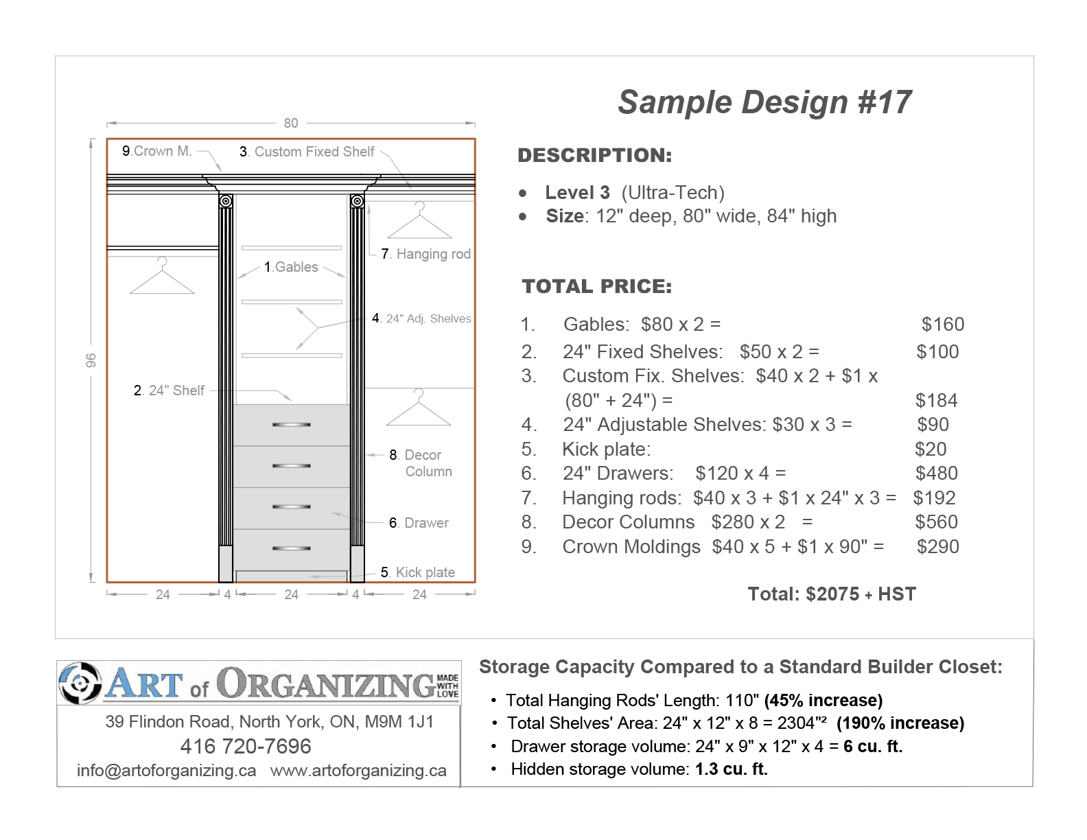 Upgraded Hardware – Includes hanging rods and flanges, hanging rails and brackets, cam locks, drawer slides, adjustable shelf pins, and more |