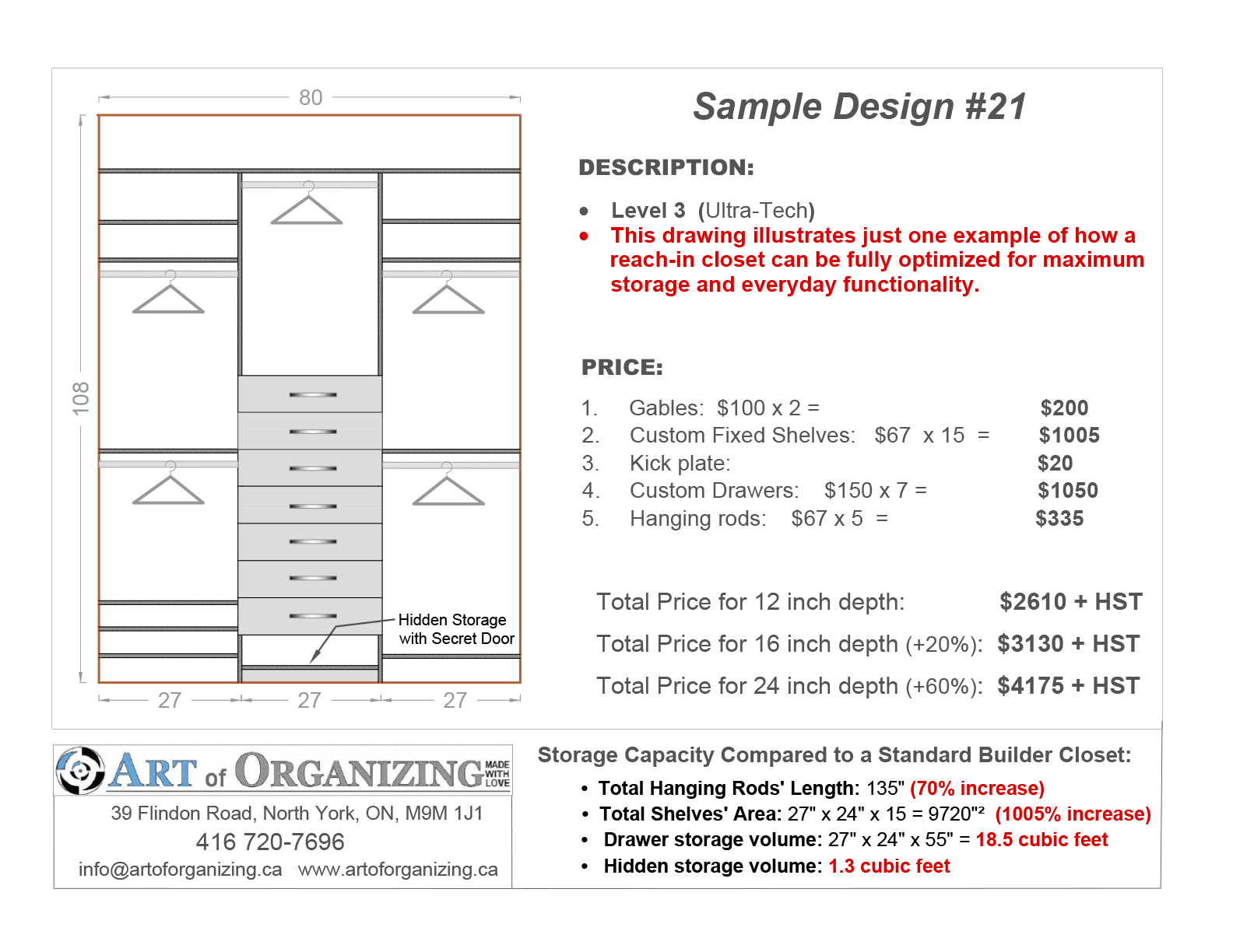 Design Option #10: Illustrated differences between Custom Closet and Cabinet Systems
